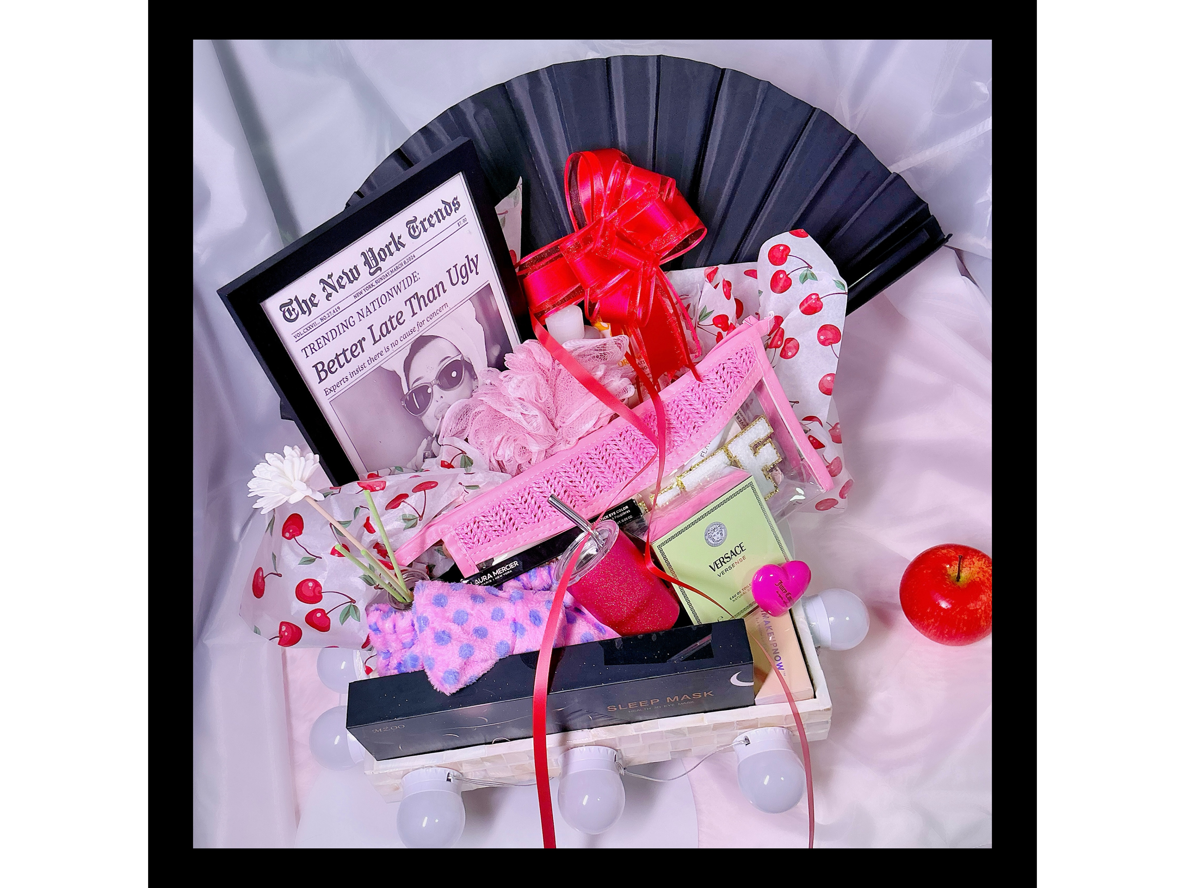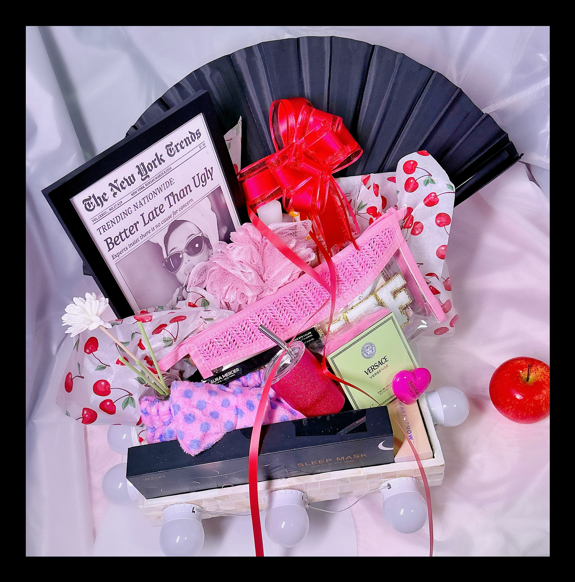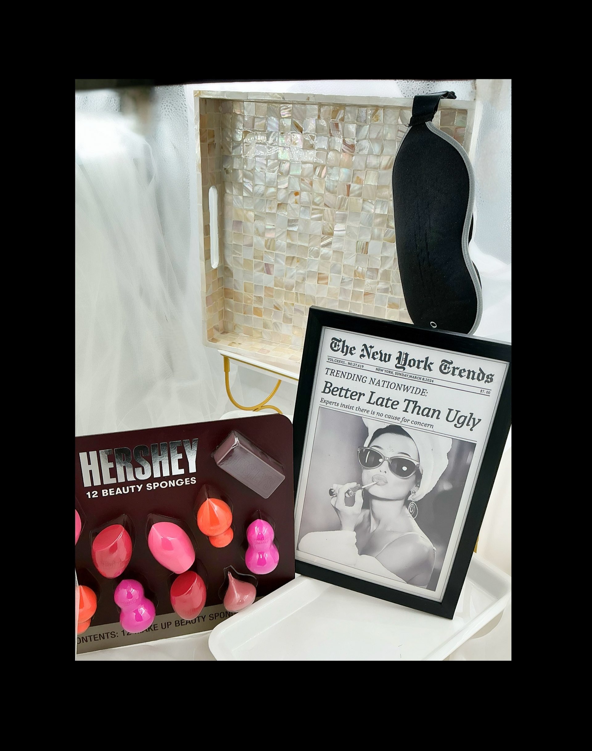 Pretty Little Indulgences is a curated vanity collection designed for the woman who treats getting ready like a ritual. Featuring designer fragrance by Versace, luxury eye color from Laura Mercier, cult-favorite skincare staples, precision grooming essentials, and playful glam accessories, this set blends high-end beauty with fun, feminine details. Finished inside a statement pearl mosaic tray with bold décor accents, it’s a full glow-up experience in one unforgettable presentation.