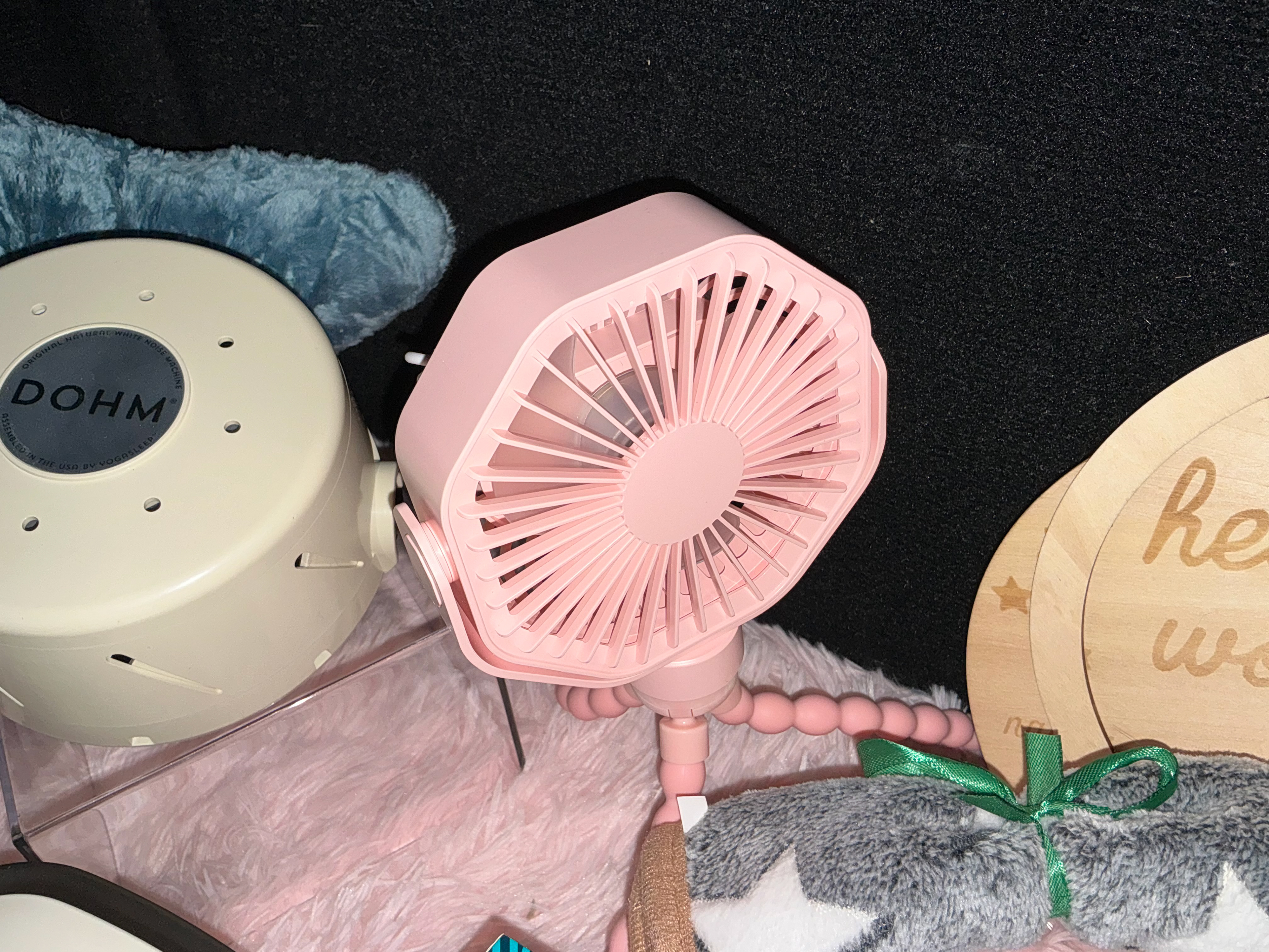 Clip-on fan for airflow during walks, car rides, or naps on the go.