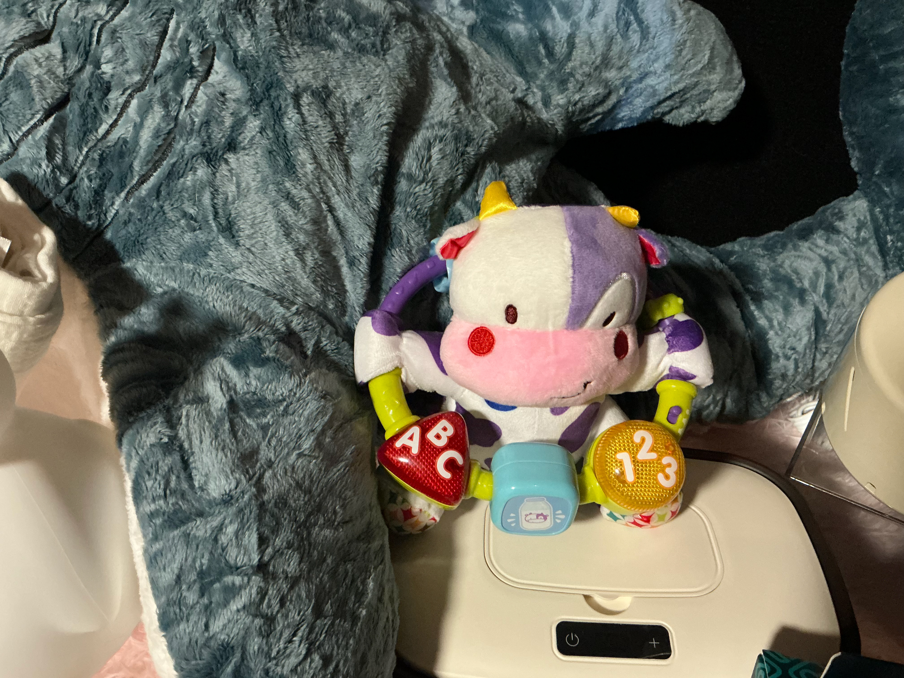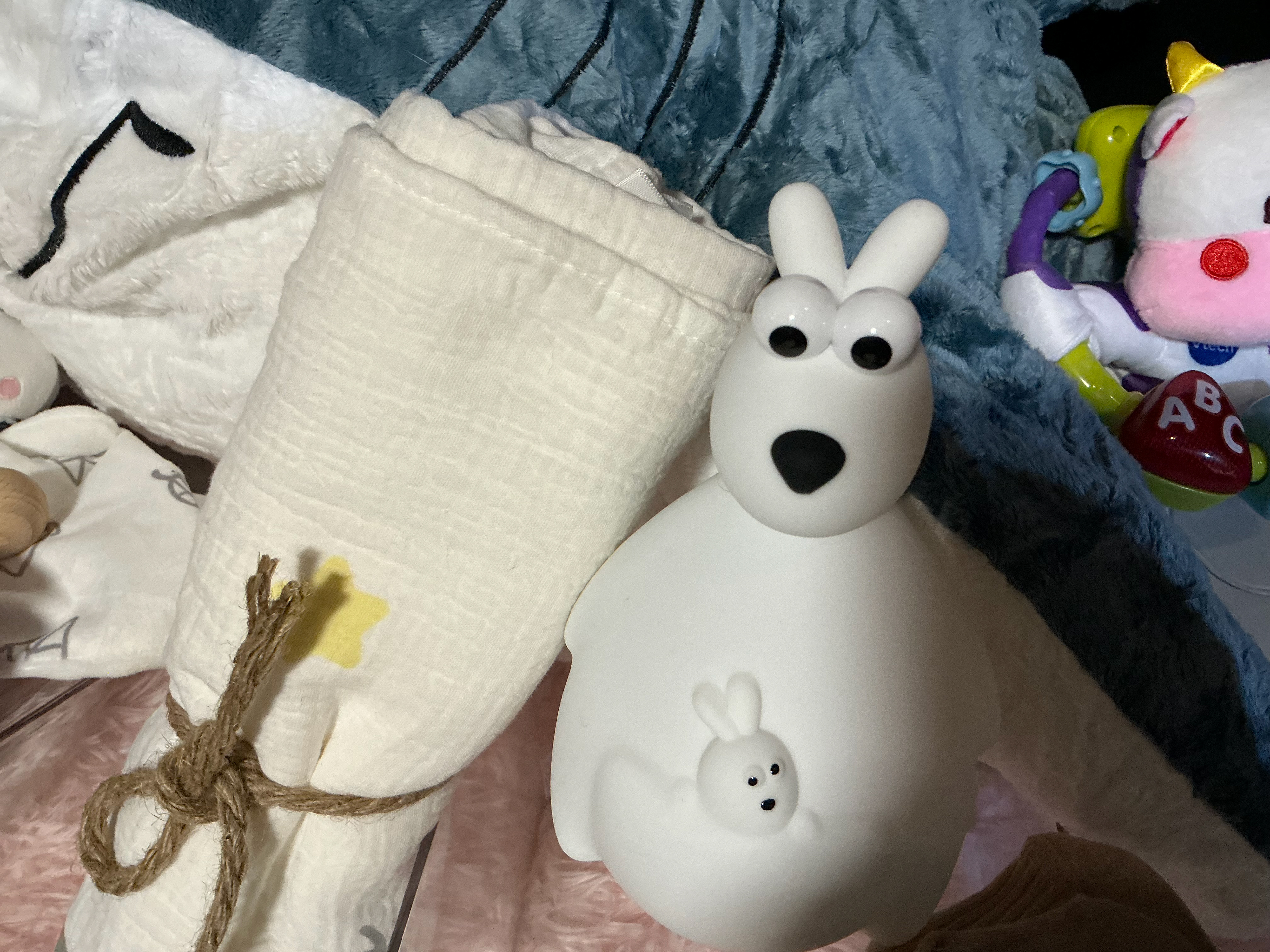 Soft, squeezable silicone night light with adjustable brightness. Rechargeable and safe for nursery or nighttime feeds.
