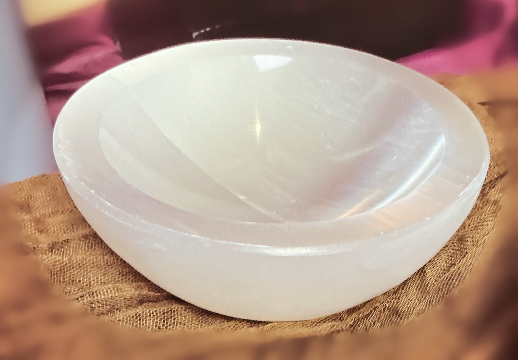 Handmade selenite crystal bowl (10 cm) for smudging and crystal charging