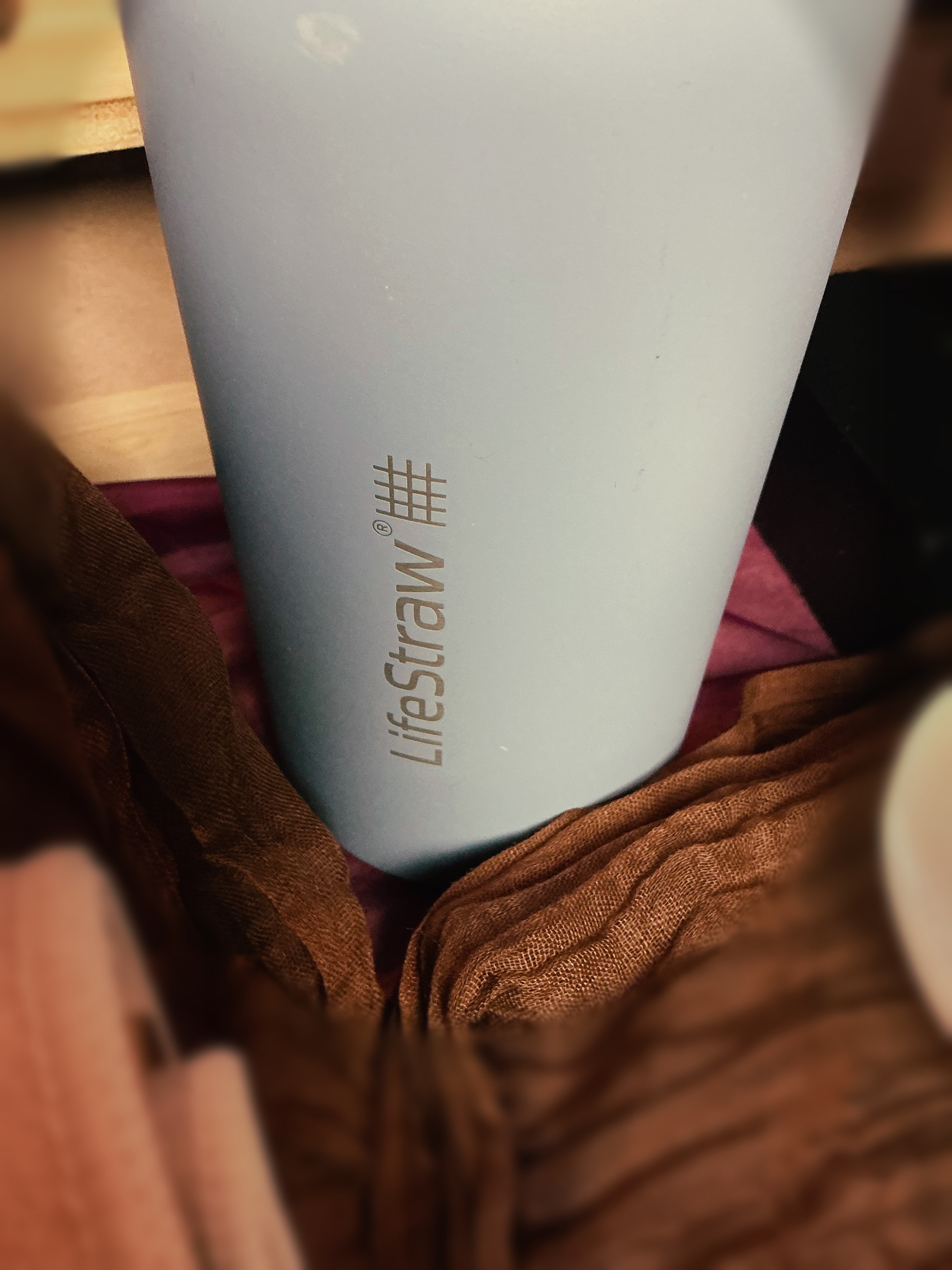 LifeStraw Go reusable water bottle with built-in filtration (light blue)